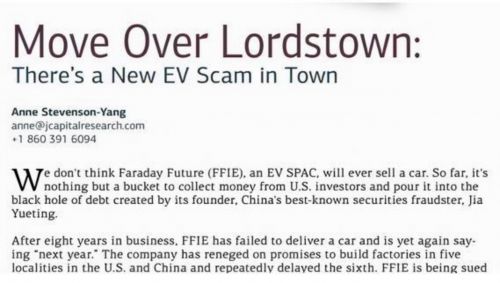 贾跃亭FF公司遭做空 被指是“新兴的电动汽车骗局”