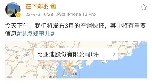 实际上,早在昨天下午,位于微博就已看到比亚迪汽车品牌及公关总经理助理郑羽所发布的动态:“我们将发布3月的产销快报,其中将有重要信息。”只不过,彼时未曾料到,所代指的会是官宣停产燃油车。