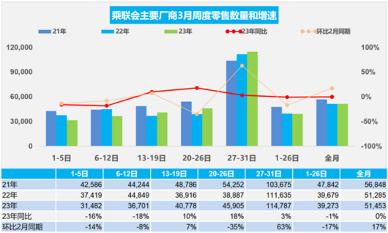 乘联会发布的最新数据亦显示,3月国产狭义乘用车零售销量为158.7万辆,基本与去年同期持平,同比微增0.3%,环比只增长14.3%,是本世纪以来最弱的3月环比增幅。