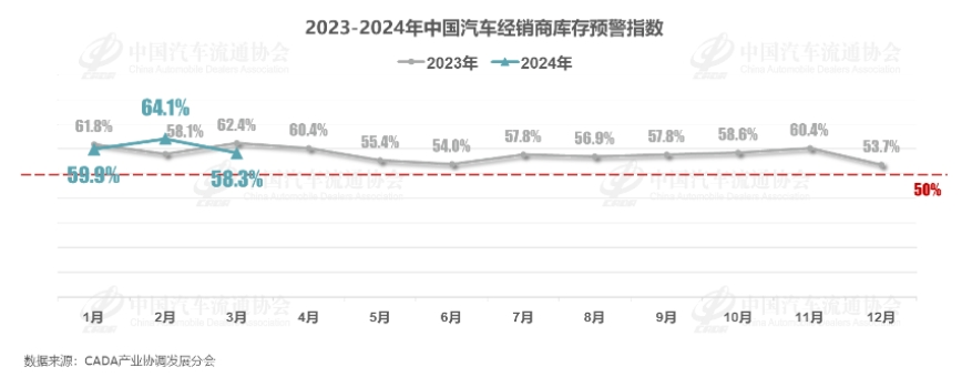 3月31日,中国汽车流通协会发布的最新一期“中国汽车经销商库存预警指数调查”显示:2024年3月,中国汽车经销商库存预警指数为58.3%,同比下降4.1个百分点,环比下降5.8个百分点。库存下降的背后,跟3月车市销量回升有关。